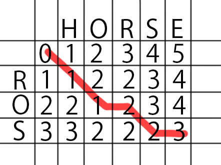 具体来说D[i][j],表示horse前i个字母和ros的前j个字母的编辑距离