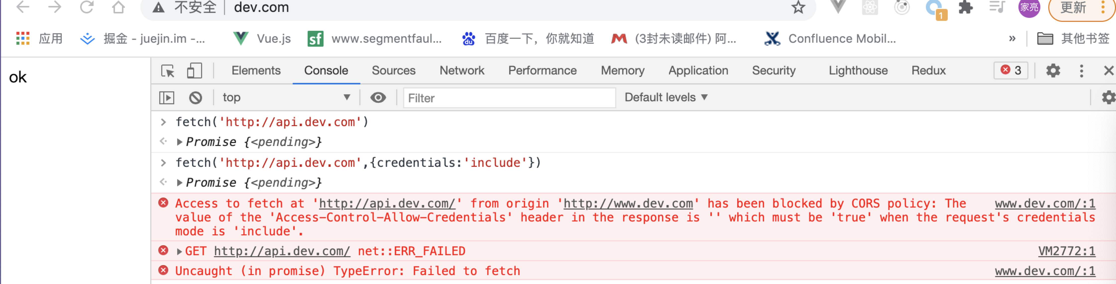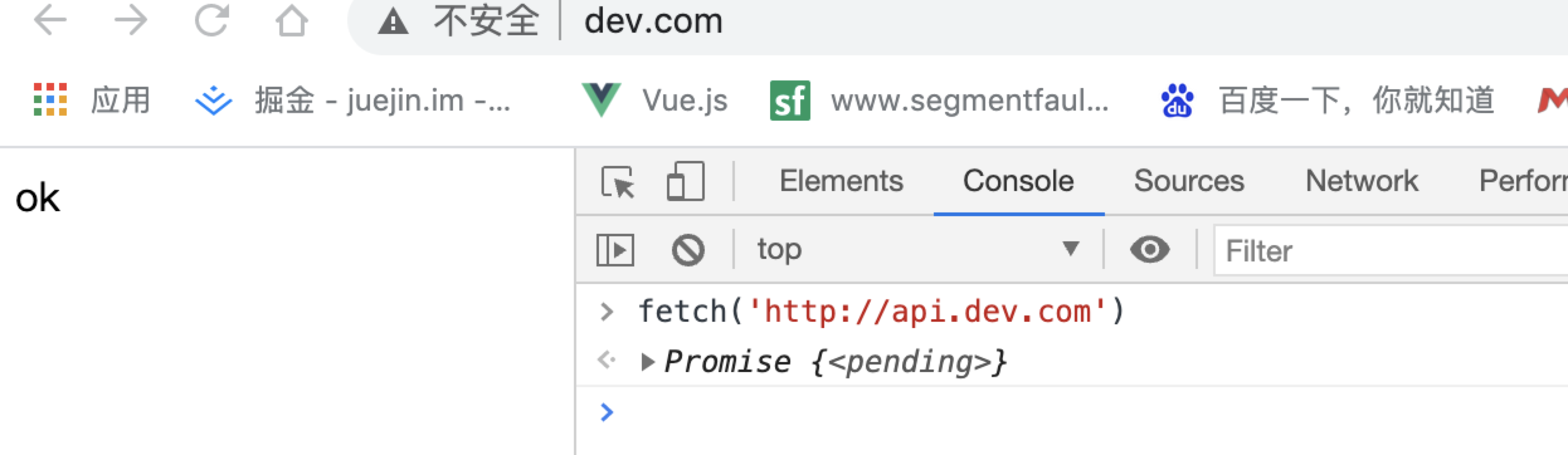 我们在dev.com下请求api.dev.com看看会发生什么?